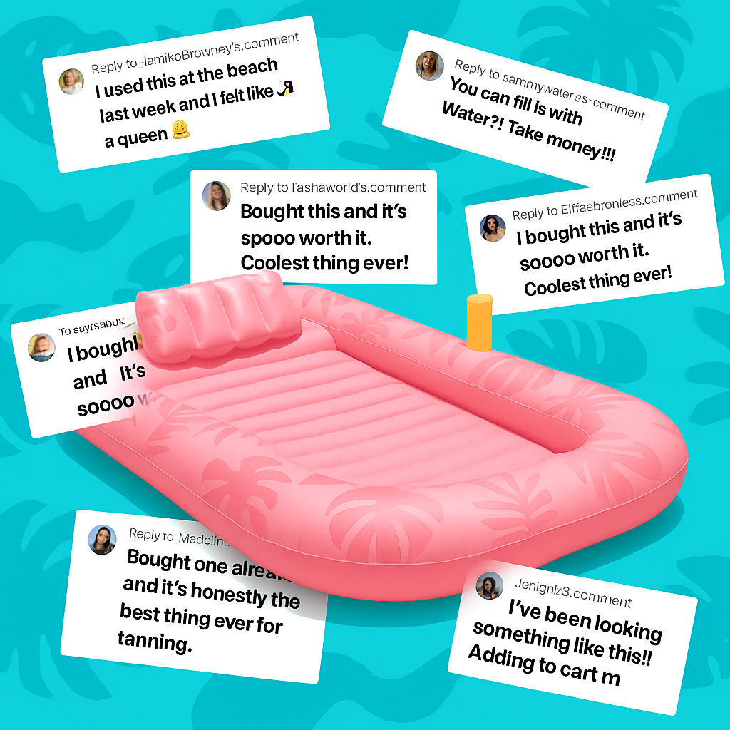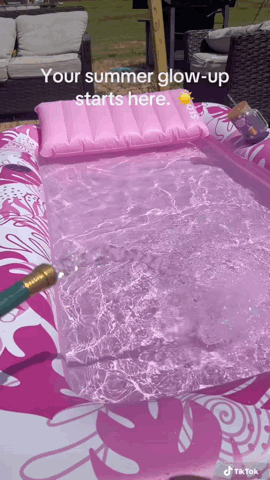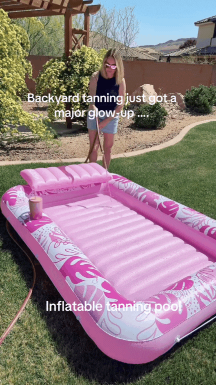 This pool is everything. Super cute, comfy, and way better than expected. The water keeps you cool while helping you tan faster — 10/10 recommend!